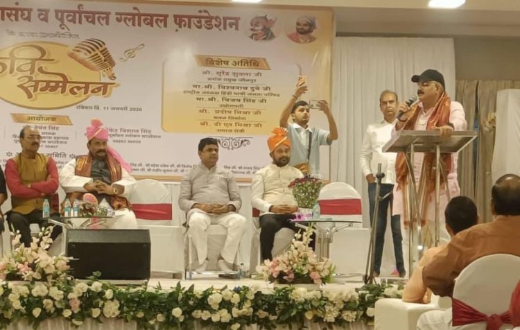 नवी मुंबई : हिंदी भाषी विकास महासंघ व पूर्वांचल ग्लोबल फाउंडेशन के संयुक्त तत्वावधान में खारघर-नवी मुंबई स्थित श्री राघवेन्द्र स्वामी मठ में एक भव्य कवि सम्मेलन का आयोजन किया गया। हास्य कवि सुरेश मिश्र, लाफ्टर चैंपियन फेम सुनील सावरा, योगेश मिश्र व सूरज त्रिपाठी ने अपनी हास्य व्यंग कविताओं से श्रोताओं को लोटपोट कर दिया। सुरेश मिश्र ने हंसाते -हंसाते बेटी के नाम ख़त कविता पढ़कर श्रोताओं की आंखों को नम कर दिया।