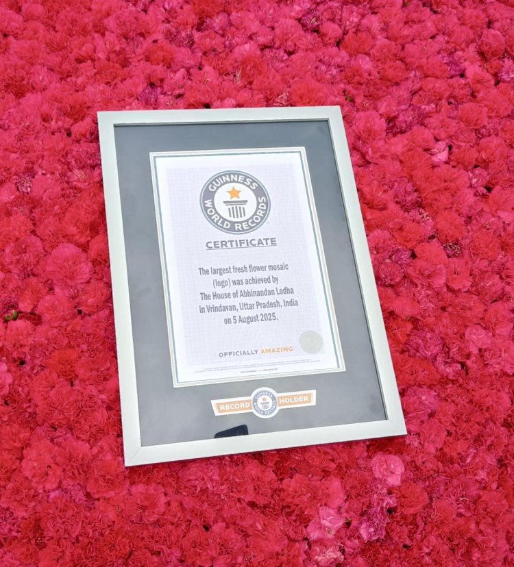 वृंदावन (उत्तर प्रदेश) : द हाउस ऑफ अभिनंदन लोढ़ा ने इतिहास रच दिया है। संस्थान ने विश्व का सबसे बड़ा ताज़े फूलों से बना मोज़ेक (लोगो) तैयार कर गिनीज़ वर्ल्ड रिकॉर्ड अपने नाम कर लिया। हजारों रंग-बिरंगे फूलों से सजाया गया यह विशालकाय मोज़ेक न केवल कला और रचनात्मकता का अद्भुत उदाहरण है, बल्कि भारत की सांस्कृतिक और आध्यात्मिक नगरी वृंदावन की सुंदरता को भी विश्व पटल पर उजागर करता है।
