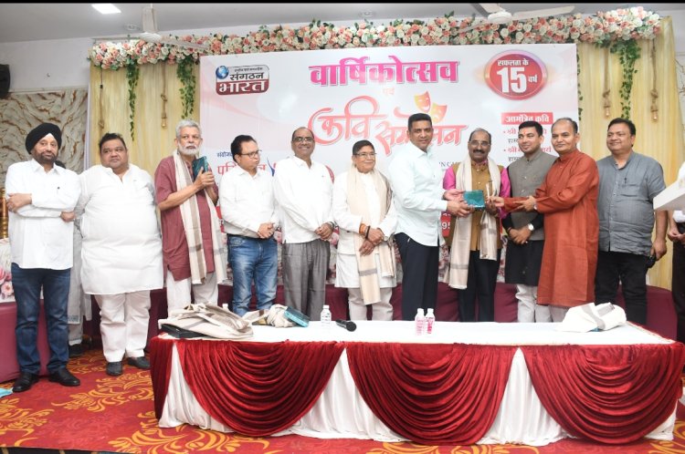 मुंबई: राष्ट्रीय हिंदी साप्ताहिक समाचार पत्र 'संगठन भारत' की 15 वीं वर्षगांठ पर कवि सम्मेलन व सम्मान समारोह का आयोजन कांदिवली पश्चिम के हर्ष क्लासिक बैंक्वेट में किया गया।